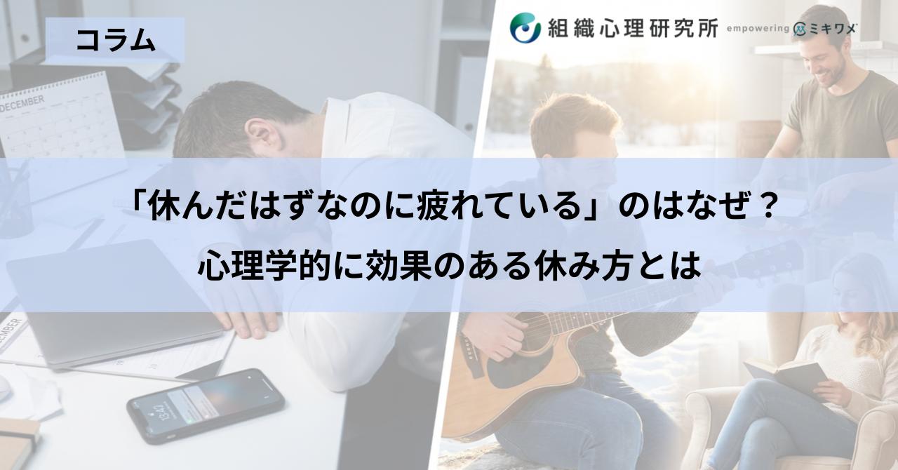 今回は、普段の休み(勤務時間外)から長期休暇を含め、「効果的な休み方」について最新の研究知見を交えてご紹介しました。